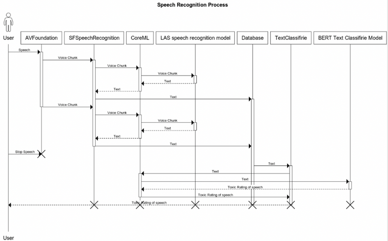 - Send the phrase to the SFSpeechRecognition library for voice analysis and get the phrase in text;