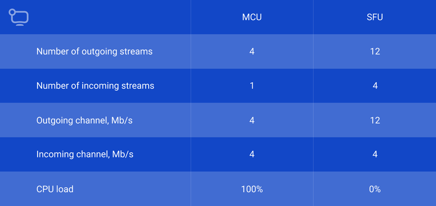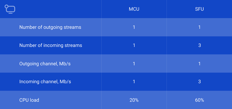 There are two main types of media server architectures: MCU and SFU. We will give an overview in this article. If you're interested in more details, check out this article.