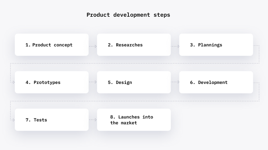 Product development usually follows a process separated into stages or steps, through which a company conceives: