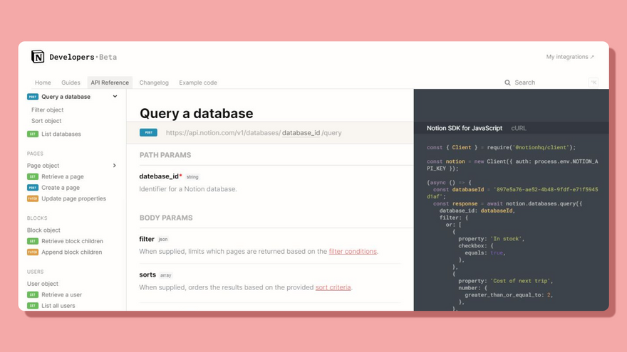 The path is mentioned in the Notion API documentation, although we won't be needing the root URL, since we are using the SDK.