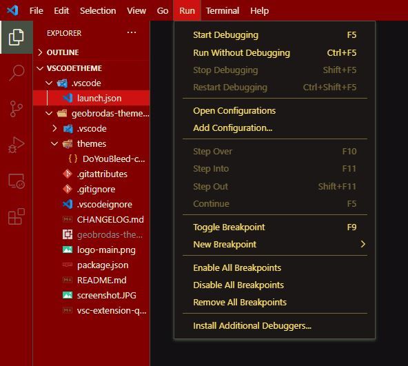 Now press F5, which will open up the debugger window, and you should get another VSCode window opened with the default theme.
