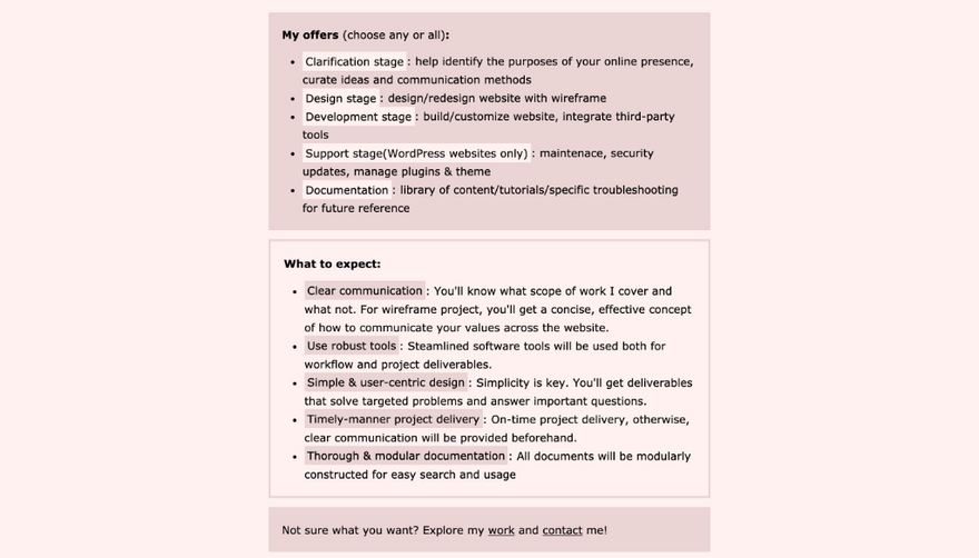 - I make the Expectation section less prominent by styling it the opposite way of the Services section.