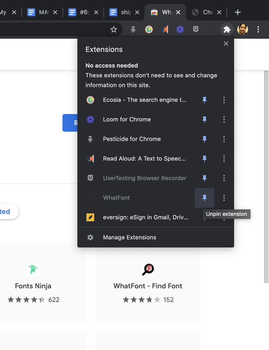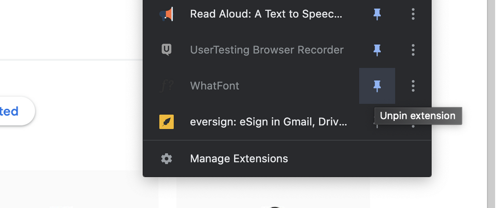 Choose to pin or unpin extension