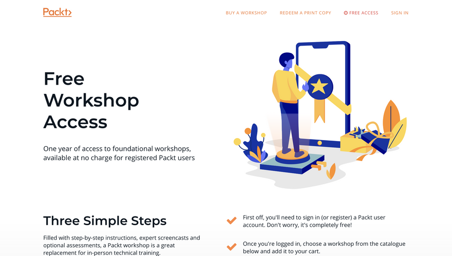 One year of access to foundational workshops, available at no charge for registered Packt users.