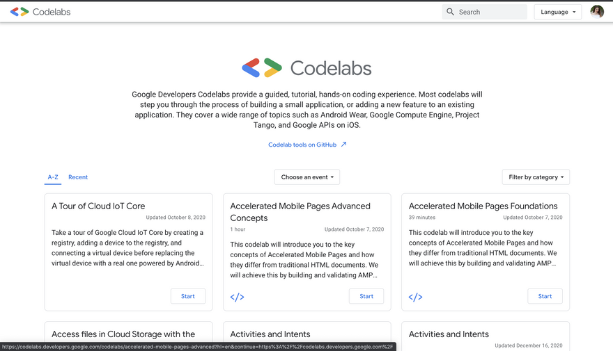 Google Developers Codelabs provide a guided, tutorial, hands-on coding experience. Most codelabs will step you through the process of building a small application or adding a new feature to an existing application. They cover a wide range of topics such as Android Wear, Google Compute Engine, Project Tango, and Google APIs on iOS.