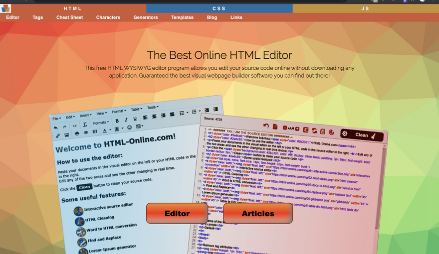 This free HTML WYSIWYG editor program allows you to edit your source code online without downloading any application. Guaranteed the best visual webpage builder software you can find out there!