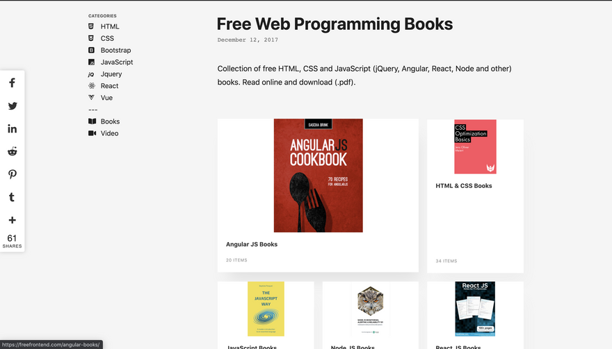 Collection of free HTML, CSS, and JavaScript (jQuery, Angular, React, Node, and other) books. Read online and download (.pdf).