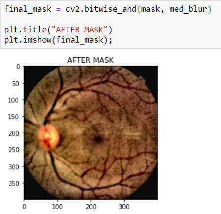 also, beta=-1 means, reverse all values of pixels. Gamma=255 is for reverse image color. as you can see it turned white. And thus, only blood vessels appear.