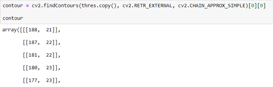 contour = cv2.findContours(thresh.copy(), cv2.RETR_EXTERNAL, cv2.CHAIN_APPROX_SIMPLE)
