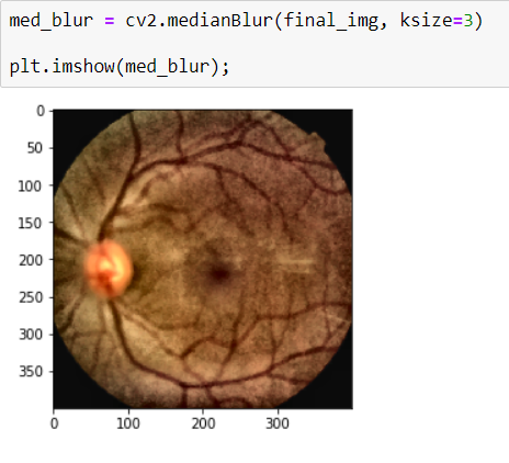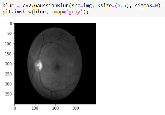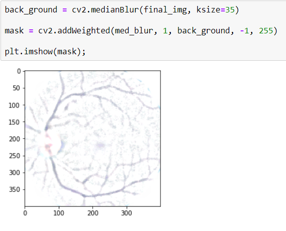 To do that, First I will apply BLURRING with a huge kernel size because it makes the image more blur, just the blood vessels will appear, after that, I will have a background that has appeared blood vessels.