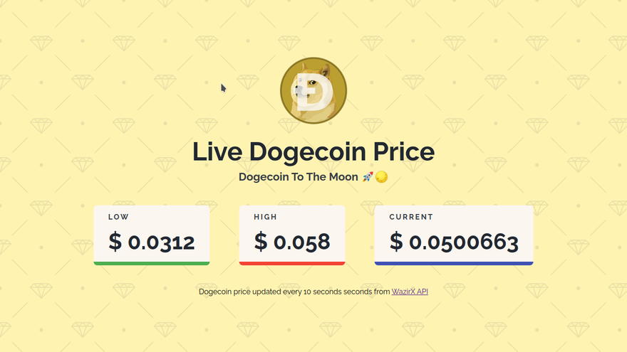 Congratulations! You have built yourself a nice and simple web application using React to stay updated with Dogecoin. If you faced any difficulties during building it, please have a look at the GitHub repo or post a comment down below and I'll be more than happy to help you out. That's all, folks!