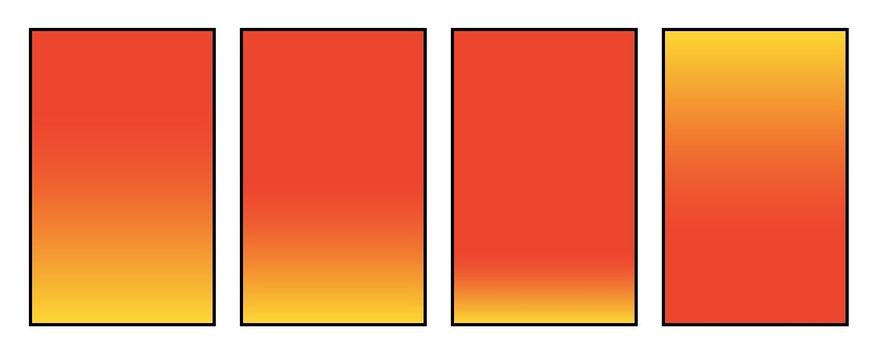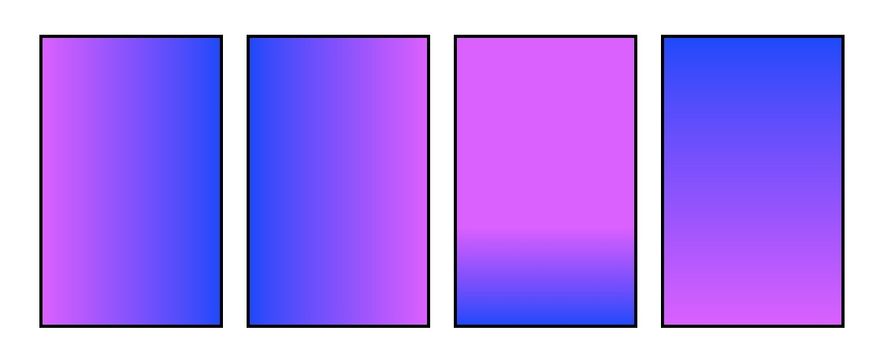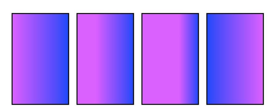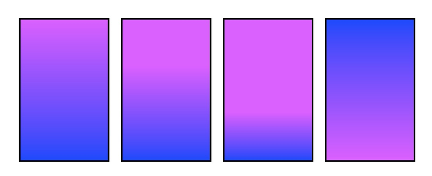 to right, 2. color midpoint transition at 33% with to right, 3. color midpoint transition at 66% with to right, 4 Blue to Purple with to right