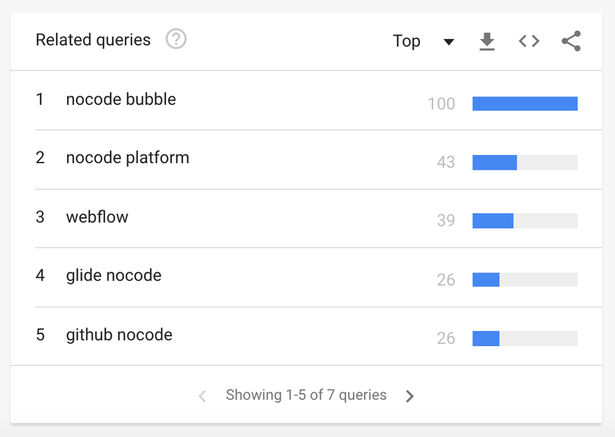Perhaps this is why “github nocode” is the top search related query. How does one do nocode? What tech stacks does one use? How do I reference and learn from other nocode experts? How can I collaborate on a nocode project with someone?