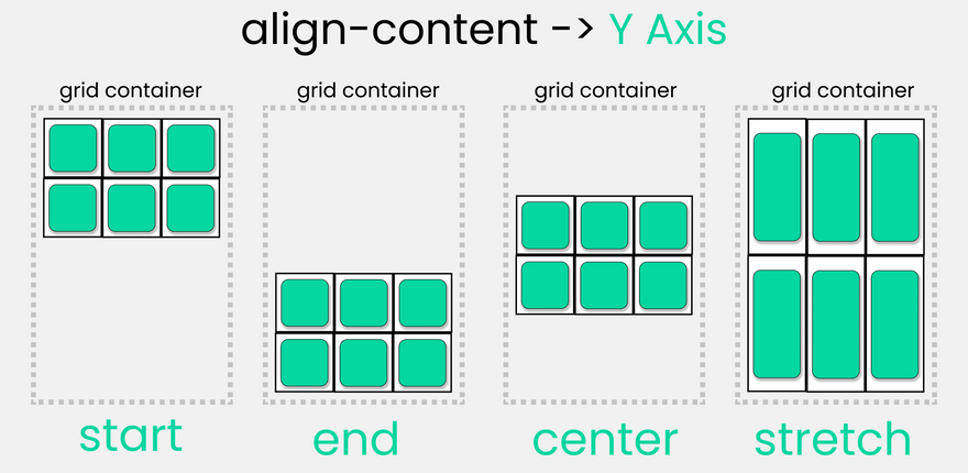 This is used to position grid-items (children) inside grid container along the Y-Axis[Cross Axis]. The 4 values are π