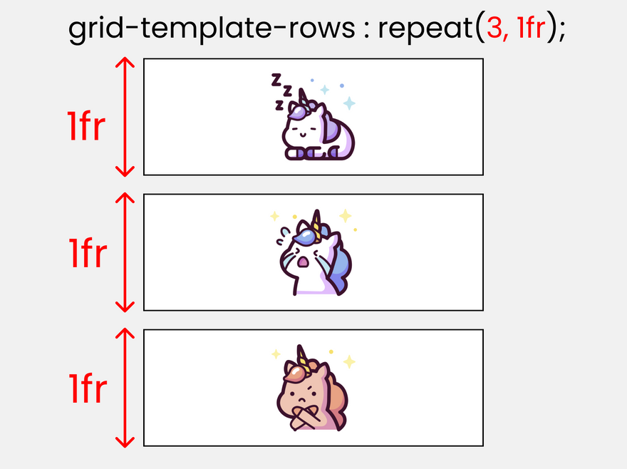 This is used to define the Number & Height of rows. You can either individually set the height of each row, or set an uniform height for all rows using "repeat()" function.