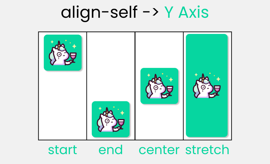This is used to position 1 individual grid-item (children) inside grid container along the Y-Axis[Cross Axis]. The 4 values are π