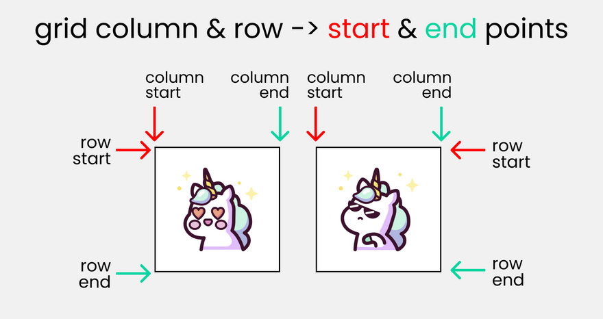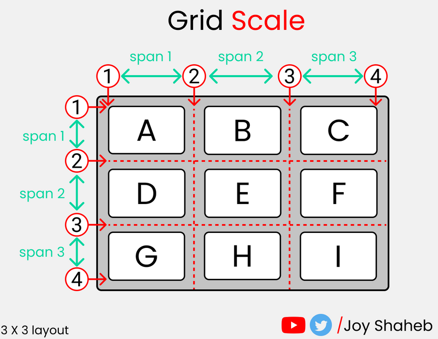 THESE 2 properties are used to join multiple COLUMNS together. It is a shorthand of grid-column-start & grid-column-end Skip to this topic on the video above if you're confused using the timestamps.
