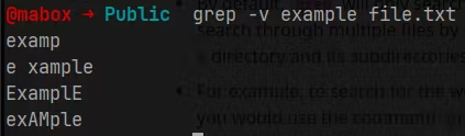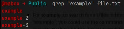 grepcommand also allows you to search for a pattern in multiple files at once. For example, to search for the word "example" in all .txt files in the current directory, you could use the command: