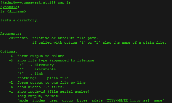 mancommand - Displays the online manual for command. Type q to quit viewing the manual page. The documentation provided by the man command is commonly called "man pages." -