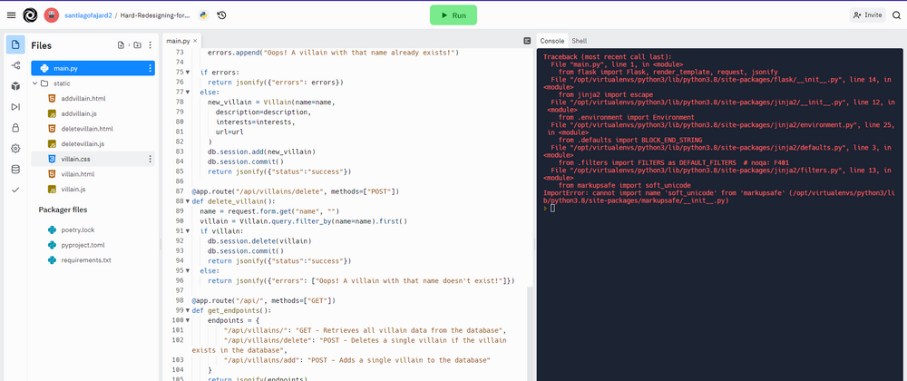 It worked perfectly during codecamp, but in Replit I am getting several errors: