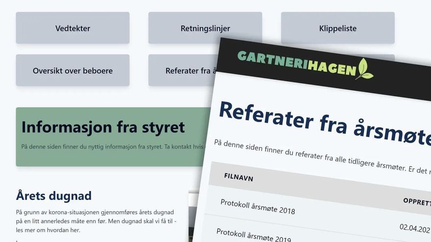 I'm a board member in a small condominium with 21 sections, and until recently we have managed with nothing more than email and a Facebook page to get information out to the residents. The plan was to continue like that - until a newly moved-in neighbor came over and asked why we did not have a website where he could find useful info. And why not? I just had to figure out how we could build it without spending too much money.