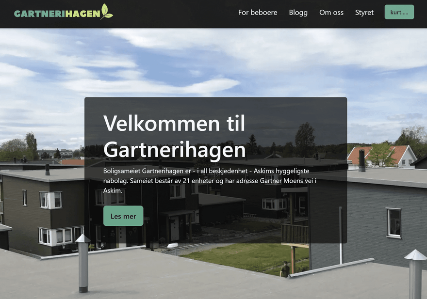 The result was a quite performant website that does not cost the condominium a penny to run - except for the 120 kroner (~12 euro) a year for the domain https://gartnerihagen-askim.no.