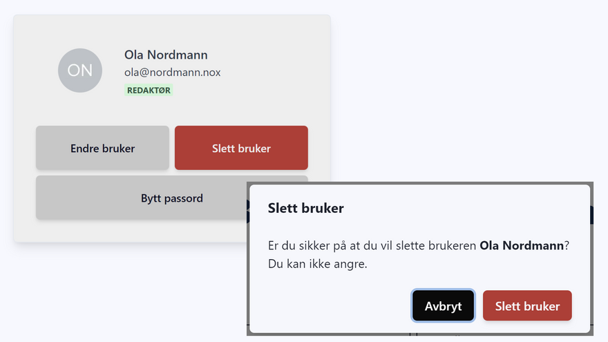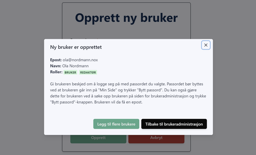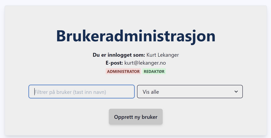 Du vil da kunne legge til, slette eller endre brukere, samt gi brukere admin-tilgang.