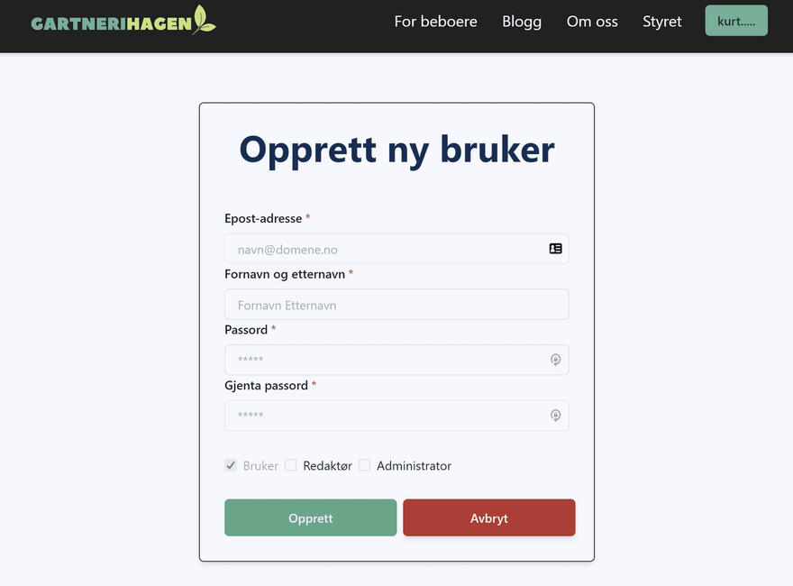 description='Du må logge inn for å administrere brukerkontoer for Boligsameiet Gartnerihagen.