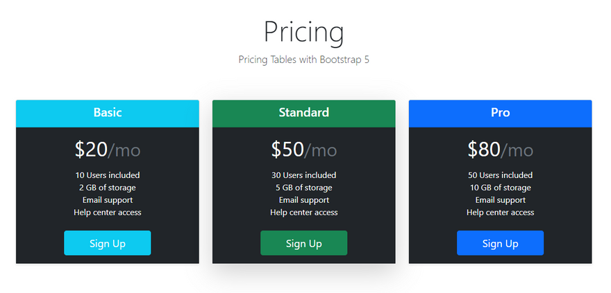 Bootstrap Pricing Tables