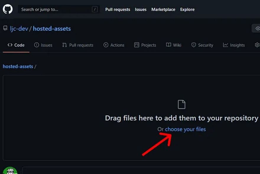 - Either drag files from your PC or click on choose your files to upload. Then click on Commit changes.