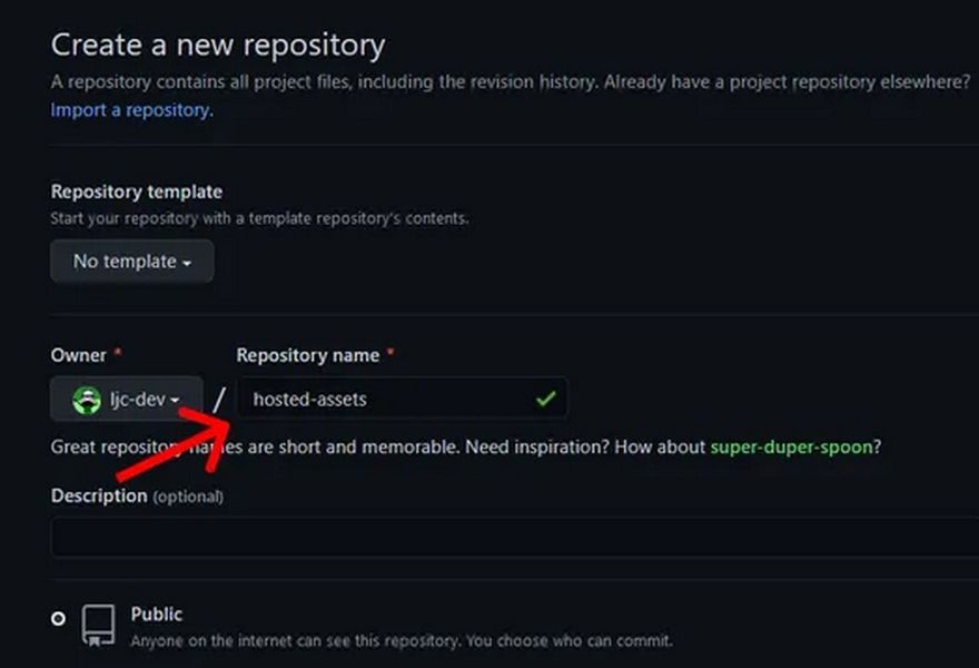- Add a repository name (I've called it hosted-assets). Then leave the other options to default and click on Create repository.