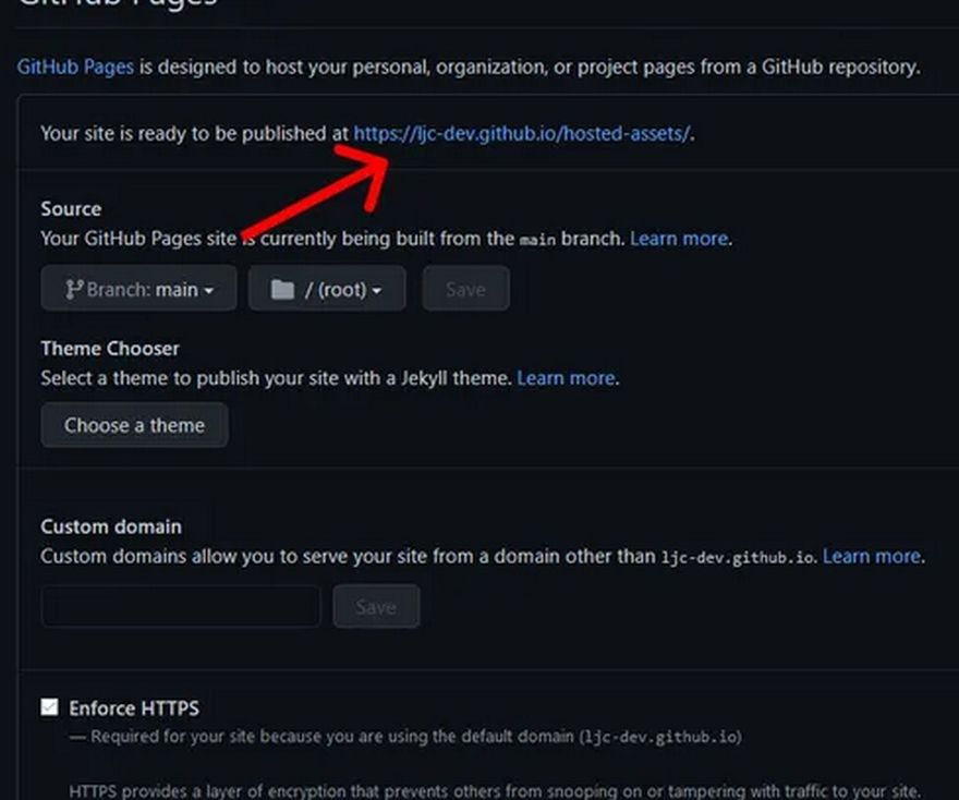 The page will reload, and on scrolling back to the Github Pages section, you'll find the newly created link.