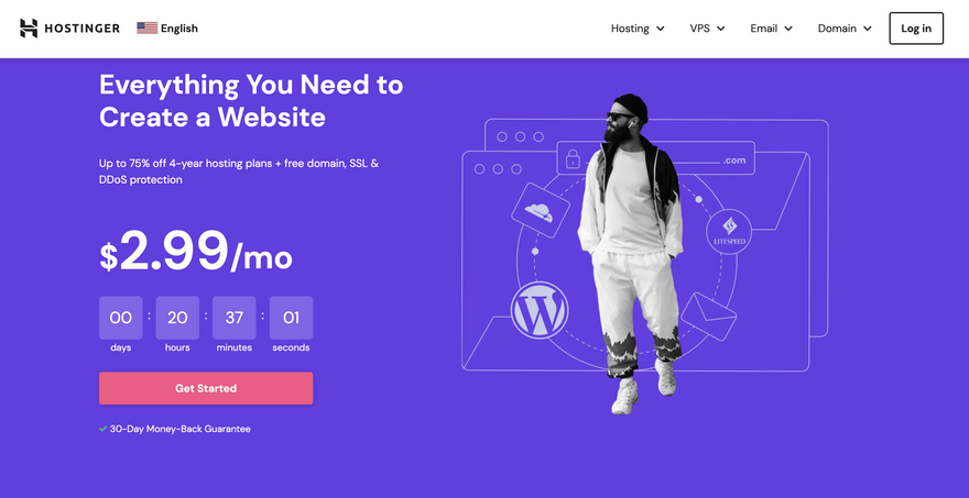 The highly rated hosting from Hostinger offers excellent performance, a sizable knowledgebase, and is simple to set up. We currently have a unique offer for their Premium Shared Hosting, which comes with 100 sites, 100GB of SSD storage, and unlimited bandwidth, and is available for $1.79 per month (down from $2.59).