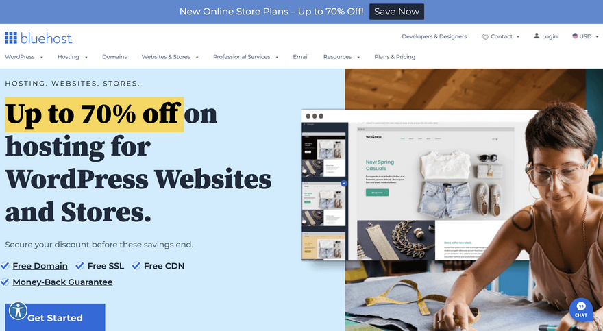 Up to 70% off on hosting for WordPress Websites and Stores With Bluehost coupon.