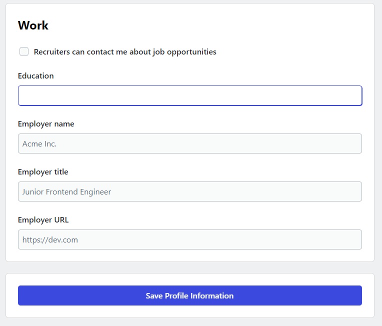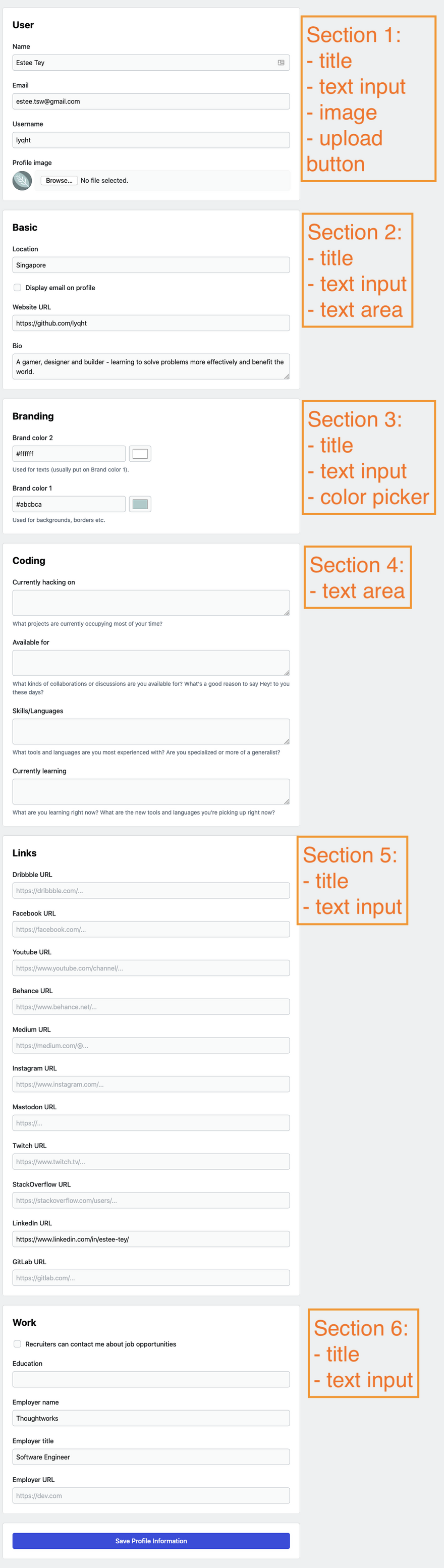 Now that we have the whole profile settings form, we can see even more recurring patterns: