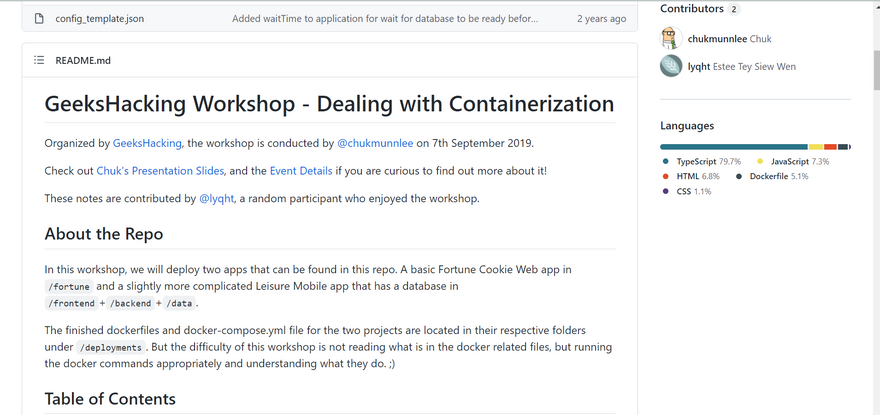 This habit carried on even as I attend community events and workshops outside of my school, where I helped to contribute documentation in the form of GitHub gist or an extensive README.md to the accompanying repository for participants to follow along the repository even after the physical workshop is over.