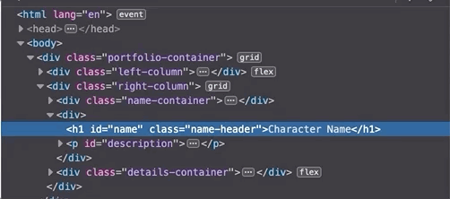 Take note of the id attribute, in this project they are relatively simple to identify but in bigger projects, it will be much harder to identify specific elements by semantic names.