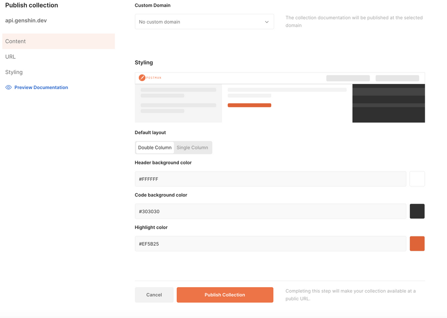 Click Publish, and you will see that your documentation is published and how you can access it.