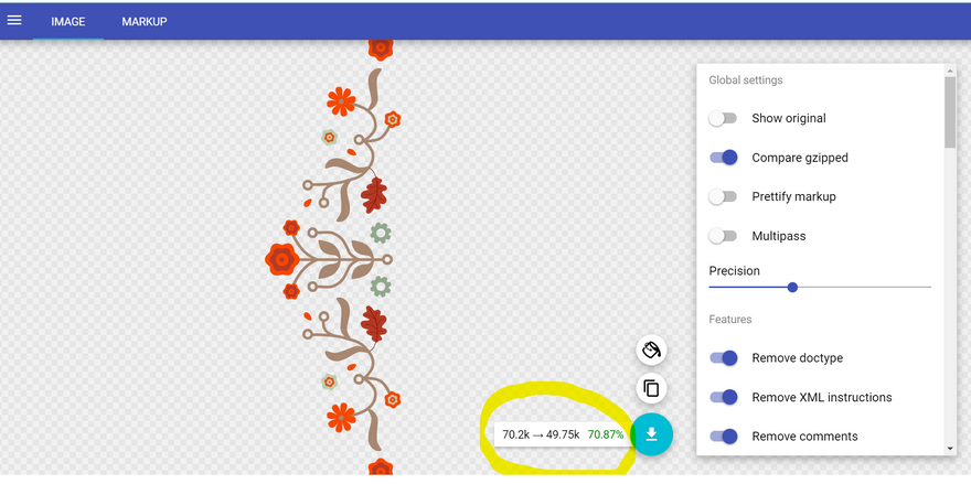 Optimization of SVG file size: SVGOMG