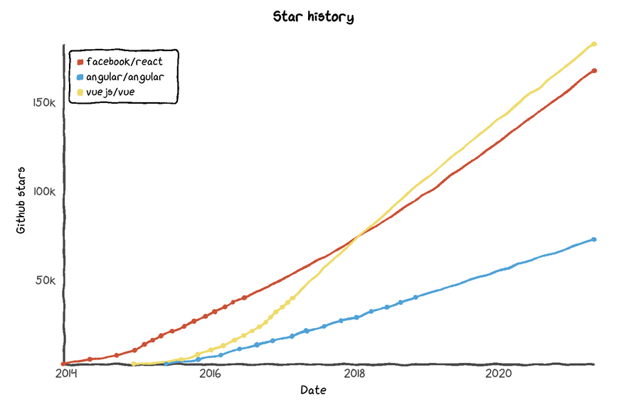 β³ This is an important topic because VueJS is one of the most popular frontend frameworks. This year in 2021, at the time of this writing, it has more Github stars β (183k) than the ReactJS library (163k).