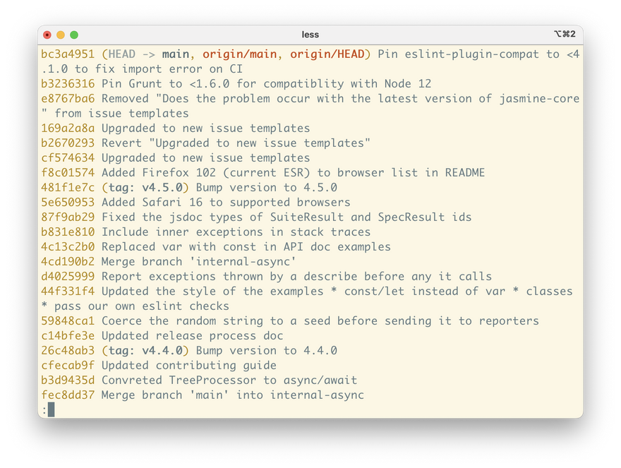 Before we start, letās make sure we are not missing out on the basic user experience features of the Git client. For my examples, Iām using the repository for jasmineāan open-source library in JavaScript for unit testing.