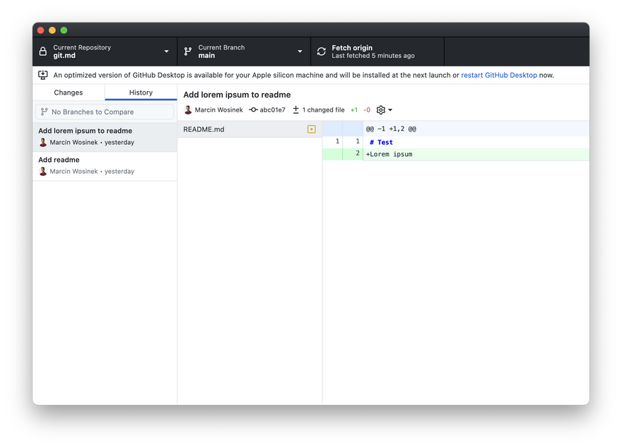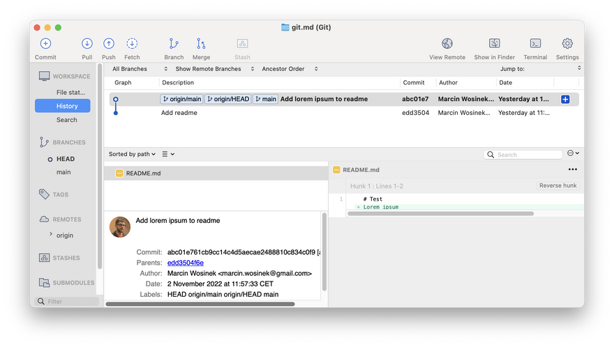 * abc01e7 (HEAD -> main, origin/main) Add lorem ipsum to readme