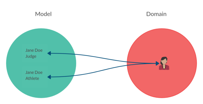 If we have two different objects (a competitor and a judge) that represent Jane Doe, we will sooner or later have inconsistencies by wanting to assign some responsibility to one of the two and not see it reflected in the other.