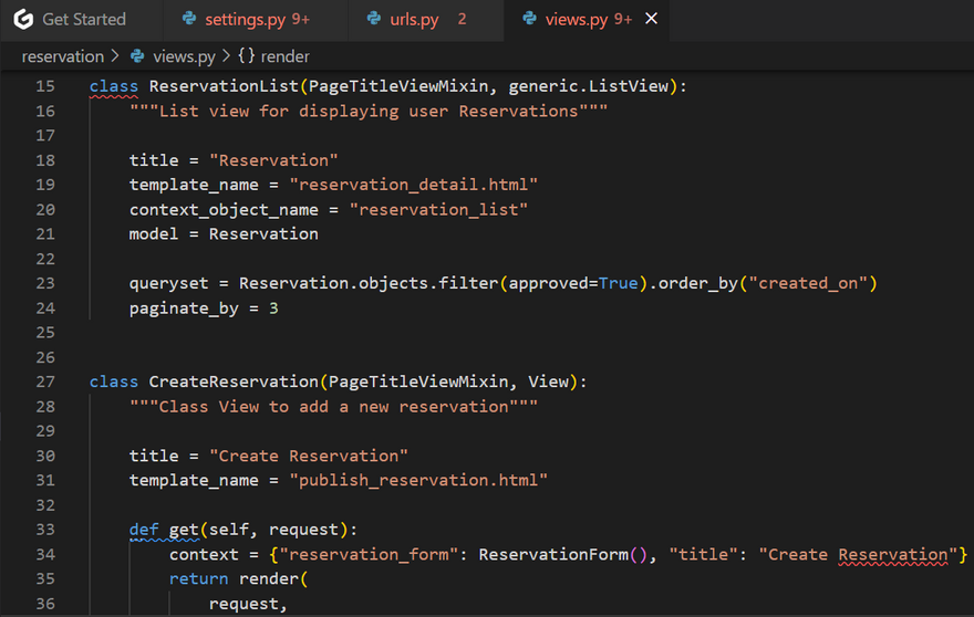 First of all I had to Install my Project app, which in this case it was called Reservations. You install a project after installing the Django component with a command like this: