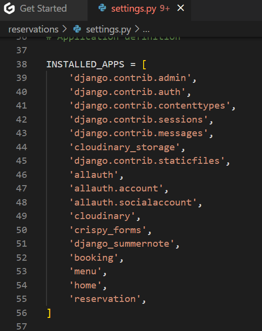 Once that's done, Django will automatically populate all the base files you will need to get your project started. The most important file you will be working on is the "Settings'' file as it will store all the data you need and the apps you will need to have all the pages running together. Installed apps in your settings will look something like this: