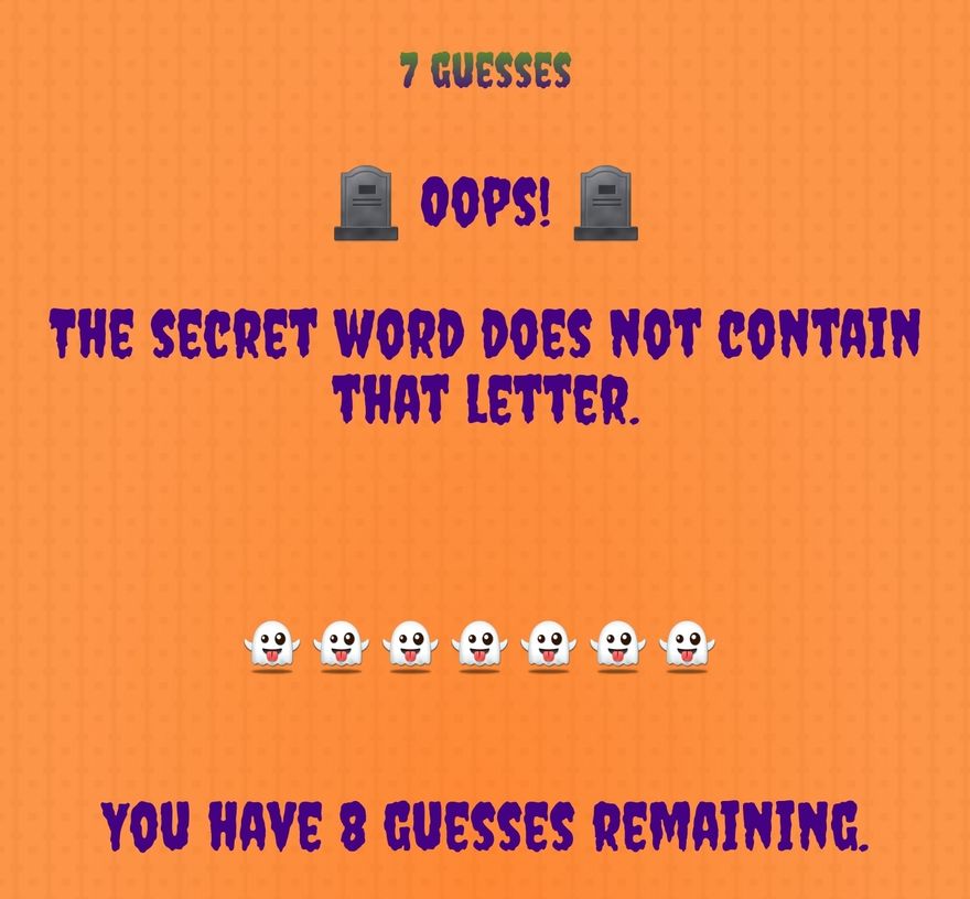Because I'm using the ghost emoji to obfuscate the word, I was having a bit of difficulty getting the page to look good responsively. I hope I finally figured it out, though. It's the really long words that seemed to mess things up, so I may have replaced "superstition" and "otherworldly" in my word list, just in case. 😉