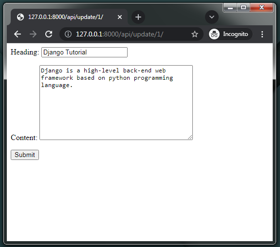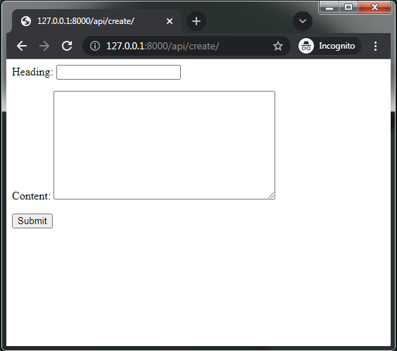 Django has the functionality to convert the fields in a model to a form that can be used for input in the frontend side. This allows us to just configure the Form and map the form to a view for the specific operation and simply add a tiny snippet of HTML to make a basic API and thus handle the entire heavy lifting.