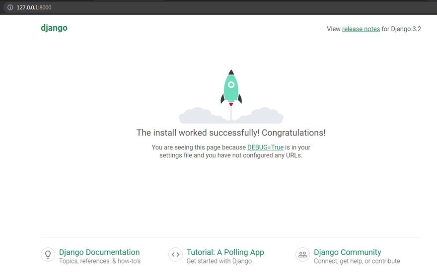 The output of the command python manage.py runserver should be visible in the browser at https://127.0.0.1:8000 as below :