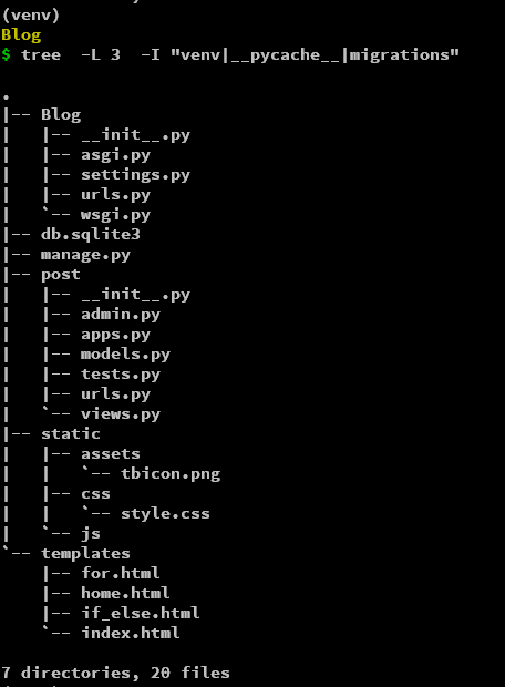 Here is the django project structure which I have created with this series so far: