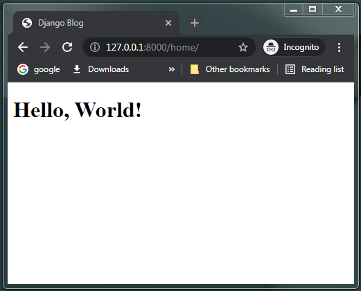 We can now see the following output and thus, we are now rendering a simple HTML template in Django.